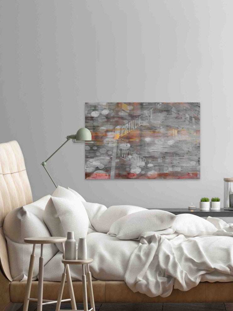 Striking and unique, the "Prince St" Print on Canvas by Parvez Taj will bring your walls to life. Printed on canvas, this 18 inch wide by 12 inch tall contemporary artwork will make a statement in any living room, dining room, or bedroom.- Fine art canvas print by Parvez Taj- Professionally hand stretched- Gallery wrapped in sustainable, non-warping wood- Arrives ready to hang- Made in the USA- Includes a certificate of authenticity- Artist signature on the front