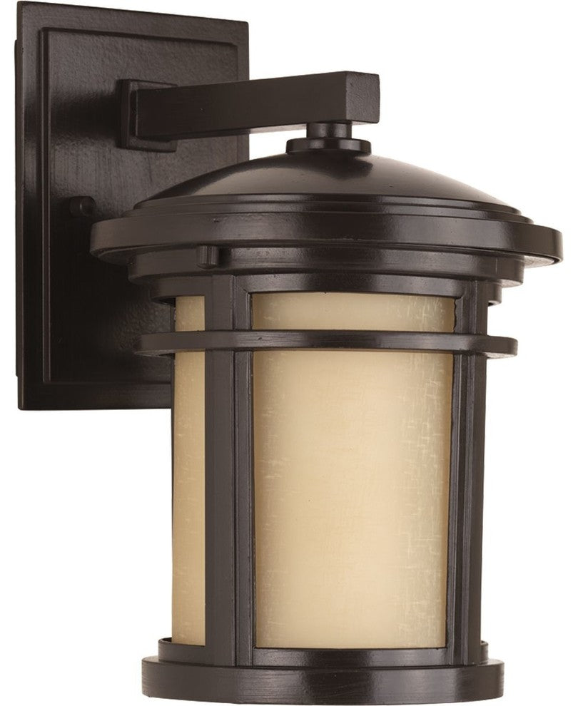 Small wall lantern with etched umber linen glass. Includes dark sky shield for full cut-off illumination or remove for a traditional lighting effect.Finish: Antique BronzeBulb Type: Uses Medium BaseBulb Wattage: 75Bulb Quantity: 1Listed: Wet location listedMount Type: WallStyle: Traditional/CasualFeatures: Small wall lantern with etched umber linen glass. Cast aluminum contruction. Powder coated finish.Room Type: Outdoor Lighting and/orDimensions: Width/Diameter: 7"Height: 10-3/8"MOUNTING:Wall mountedMounting strap for outlet boxincludedBackplate covers a standard 4hexagonal recessed outlet box4-11/16 W., 6-1/4, 1ELECTRICAL:Pre-wired6 of wire supplied120VLAMPING:Quantity: 175W Medium BaseMedium porcelain socketADDITIONAL INFORMATION:cCSAus Wet location listed1 year warrantyCompanion Chain hung lantern,Post top lantern, Wall lanternfixtures are available