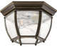 Two-light flush mount.Finish: Antique BronzeBulb Type: Uses Medium BaseBulb Wattage: 60Bulb Quantity: 2Listed: Damp location listedMount Type: CeilingStyle: Traditional/ClassicRoom Type: Outdoor Lighting and/orDimensions: Width/Diameter: 11"Height: 6-3/16"MOUNTING: Ceiling mountedMounting strap for outlet boxincludedCeiling pan covers a standard 4hexagonal recessed outlet boxELECTRICAL: Pre-wired6 of wire supplied120VLAMPING: Quantity: 260W Medium BaseMedium ceramic socketsADDITIONAL INFORMATION: cCSAus Damp location listed1 year warrantyCompanion Chain hung lantern,Close-to-ceiling, Post top lantern,Wall lantern fixtures are available