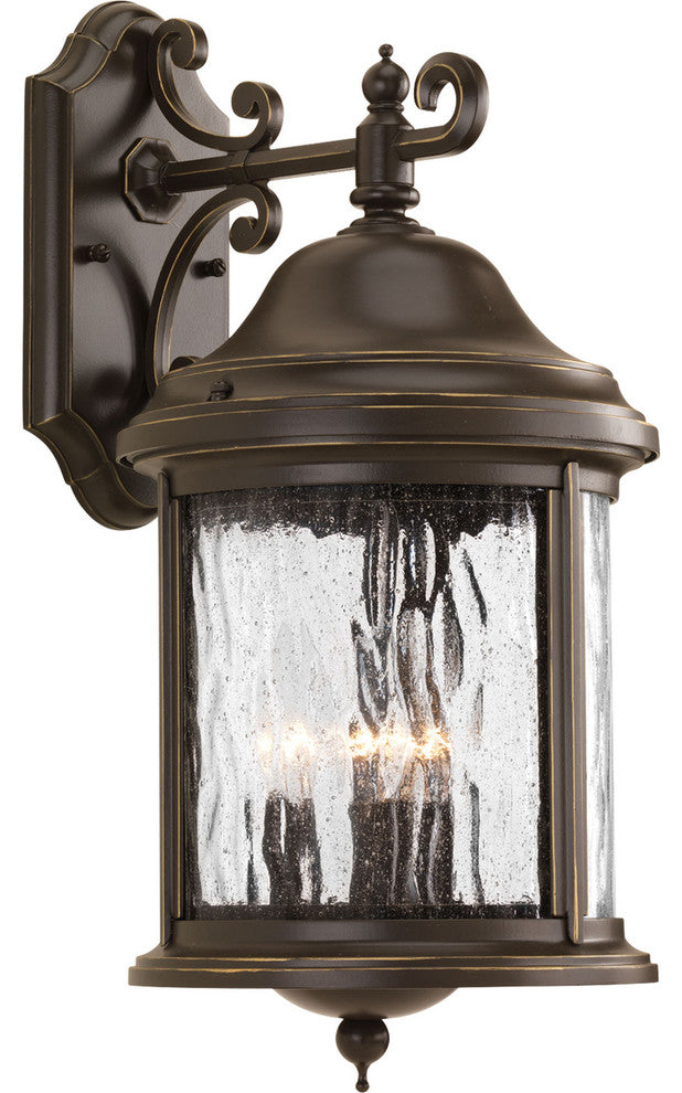Progress Lighting 3-Light Wall Lantern With Water Seeded Glass Curv