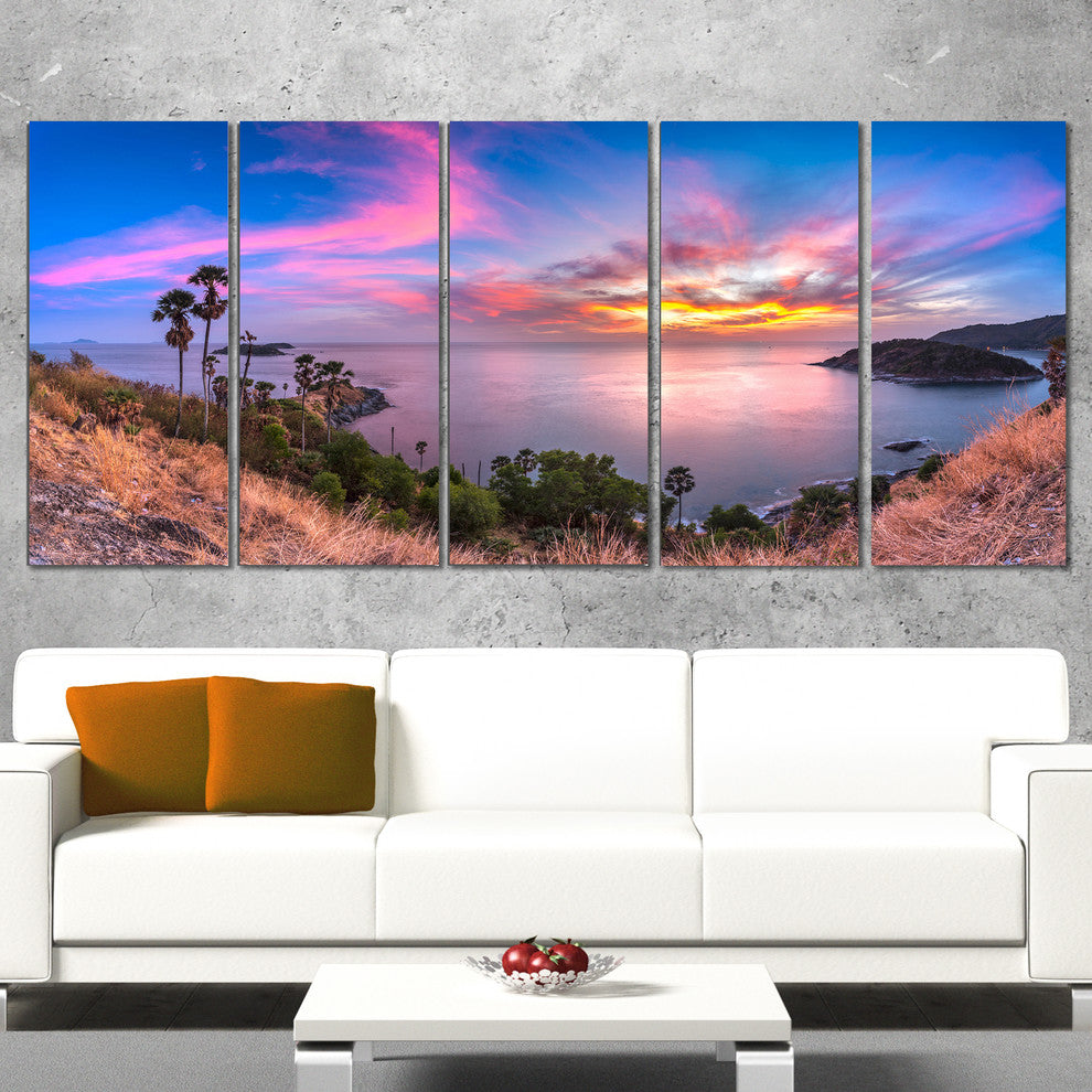"Promthep Cape Best Phuket View Point" Seashore Wall Art, 5 Panels, 60"x28"