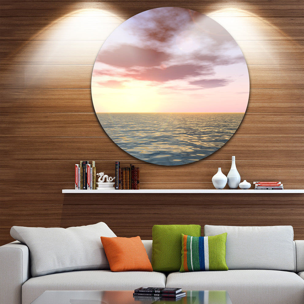 Bring Contemporary Abstraction to your home with this large Circle Metal wall art. This Purple Tinged Atlantic Seashore Metal Artwork makes it the focal point of any room or office.