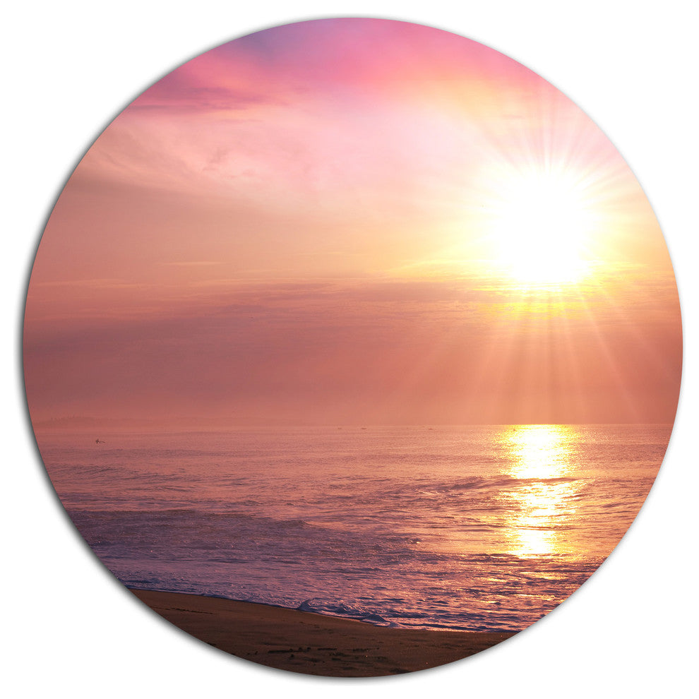 Bring Contemporary Abstraction to your home with this large Circle Metal wall art. This Purple Tinged Seashore At Sunset Metal Artwork makes it the focal point of any room or office.