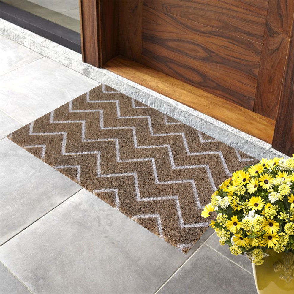 Decorative mat is great for any season and beautifies your doorstep. Durable and dirt resistant, its beautiful pattern will make a great first impression on any guest. Made from 100% natural coir fiber this durable mat provides exceptional brushing action on footwear with excellent water absorption.>COCONUT COIR : The doormat is made of 100% pure coconut coir, which is one of the strongest natural fibers in the world. The material easily captures moisture, dirt, and other particles, and acts as a natural bug repellent. Shedding in Natural in coir fibers. Use in covered outdoor areas.>ATTRACTIVE DESIGN : The eco-friendly material has a heavy-duty 0.75"� thick pile, and is made so there are no patches where you can see through to the PVC mat below. With coconut coir doormats, some shedding is inevitable, but by using Anti Shedding dyes we have reduced it to the minimum.>LOW MAINTENANCE : Coconut coir is naturally resistant to bacteria and fungi, making this the most low-maintenance doormat possible. It is also water-resistant, and will dry quickly so you won"™t need to worry about mildew or molds. Simply shake it out or vacuum it once in a while, and let the coir do the rest.>INDOOR/OUTDOOR USE : The rug is designed specifically for both indoor and outdoor use, making it ideal for any room or entryway in your home. Built to last, the durable material will withstand any weather condition.>GREAT GIFT : Easy to use the coco coir doormat is a great low-maintenance gift.