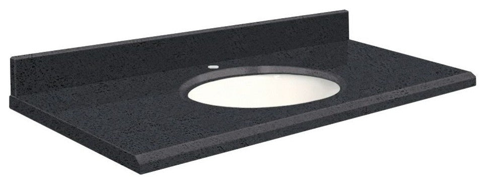 Quartz 25"x19" 1 Sink Vanity Top, White Bowl, Black Luxe, Single Hole