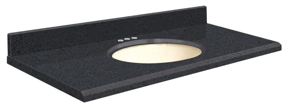 Quartz 25"x19" Vanity Top, Biscuit Bowl, Black Luxe, 4" Centerset