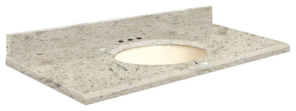 Quartz 31"x19" Vanity Top, Biscuit Bowl, Carmel, 8" Centerset
