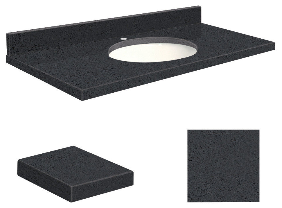 Quartz 49"x19" Vanity Top, Single Faucet Hole, White Bowl, Black Luxe, Single Ho