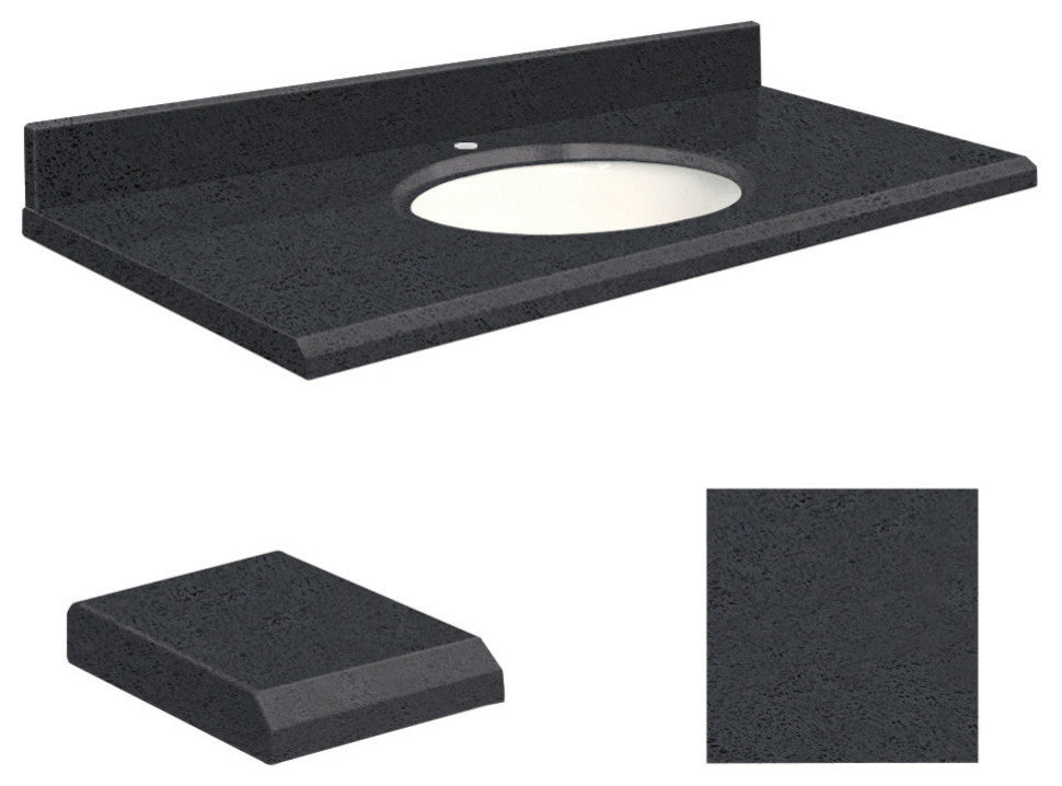 Quartz 49"x22" Vanity Top, Single Faucet Hole, Black Luxe, White Bowl