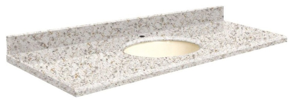 Transolid engineered quartz is produced from 93% quartz under extreme high pressures to yield a top that is hard, stain and heat resistant with a consistent color throughout. Transolid quartz tops never need sealing, polishing or reconditioning and are practically care-free. They are exceptionally hard, making them resistant to cracks, chips, scratches and stains for years of trouble-free beauty. All include an undermount oval china bowl and 4-in loose backsplash.