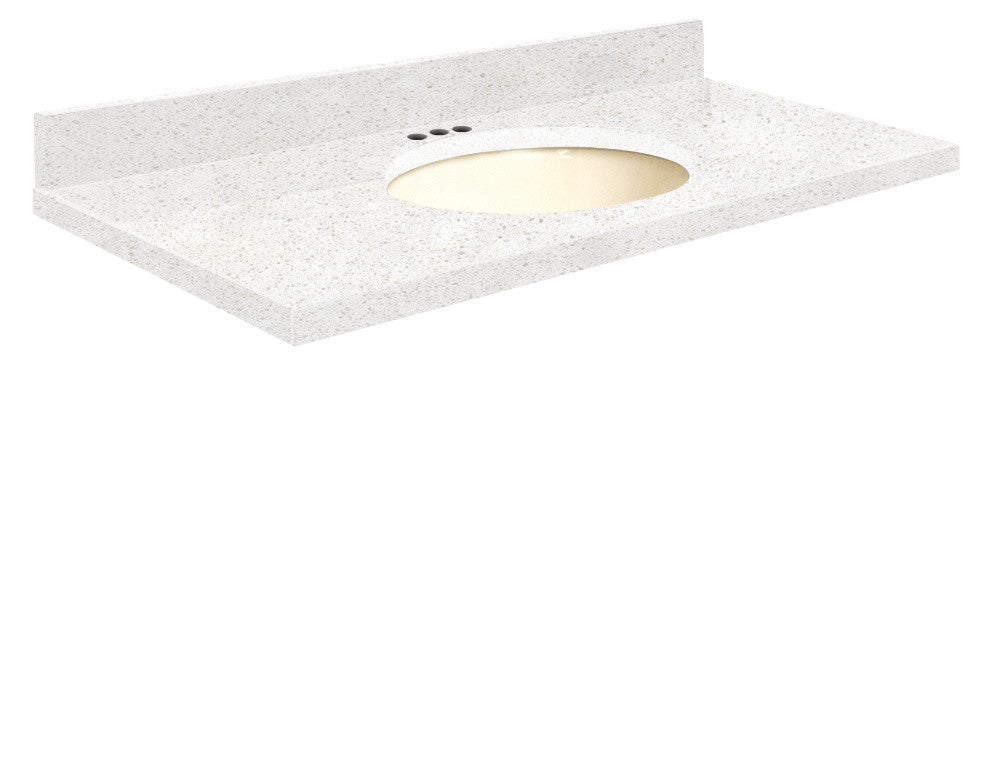Transolid engineered quartz is produced from 93% quartz under extreme high pressures to yield a top that is hard, stain and heat resistant with a consistent color throughout. Transolid quartz tops never need sealing, polishing or reconditioning and are practically care-free. They are exceptionally hard, making them resistant to cracks, chips, scratches and stains for years of trouble-free beauty. All include an undermount oval china bowl and 4-in loose backsplash.