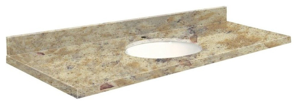 Transolid engineered quartz is produced from 93% quartz under extreme high pressures to yield a top that is hard, stain and heat resistant with a consistent color throughout. Transolid quartz tops never need sealing, polishing or reconditioning and are practically care-free. They are exceptionally hard, making them resistant to cracks, chips, scratches and stains for years of trouble-free beauty. All include an undermount oval china bowl and 4-in loose backsplash.
