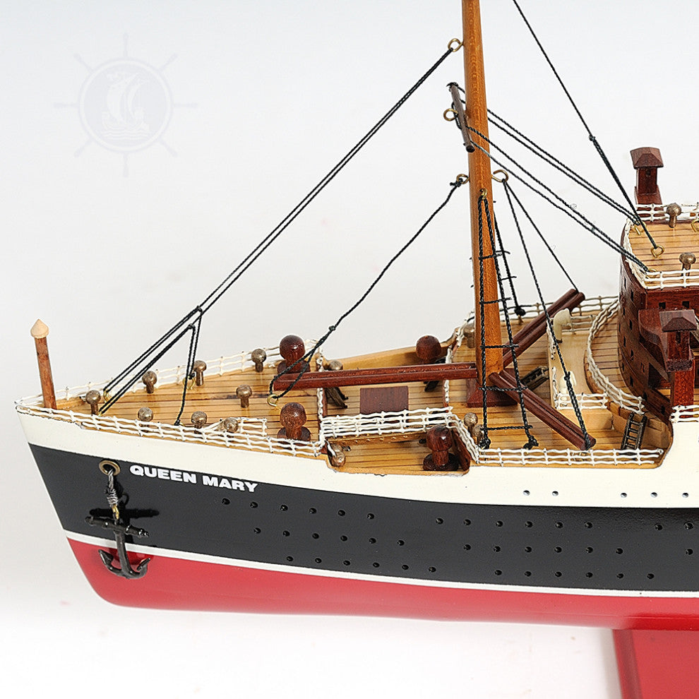 As the third largest passenger ship ever to set sail in the North Atlantic seaway, and the largest to survive, the Queen Mary is one of the recent reminders of the artistic and industrial genius that dominated the North Atlantic Ocean for over a century. Have it proudly displayed as a FULLY ASSEMBLED MODEL. Master craftsmen handcraft these highly detailed wood models from scratch using historical photographs, drawings and original plan. They are built to scale with high-grade wood such as: western red cedar, rosewood, and mahogany. They are 100% hand built individually using plank-on-frame construction method and are similar to the building of actual ships. Each model requires hundreds of hours to finish and must go through a demanding quality control process before leaving the workshop. The model is painted in red, black, and white to represent the original colors. It contains hundreds of exquisite details. There are dozens of realistic wooden life boats on both side of the main deck. All ladder, stanchions and rails are made of metal. The winches, life boats and hatches are meticulously handcrafted from wood. It is secured tightly on a solid wooden base with a brass nameplate. It''ll make a perfect gift for home or office decorator, boat enthusiast, or passionate collector.