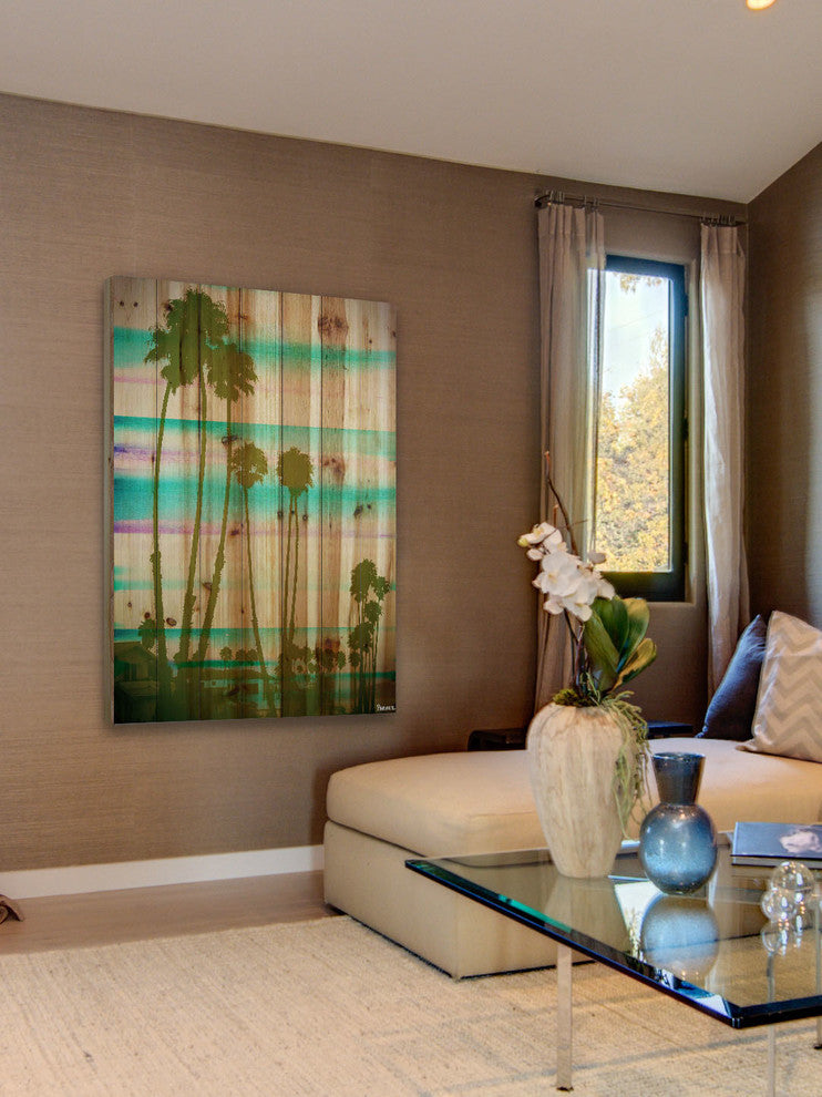 Striking and unique, the "Rainbow Through the Palms" Print on Natural Pine Wood by Parvez Taj will bring your walls to life. Printed on natural pine wood, this 24 inch wide by 36 inch tall tropical artwork will make a statement in any living room, dining room, or bedroom.- Fine art print on natural pine by Parvez Taj- wood pieces are hand-selected by Fine craftsmen for printing- Arrives ready to hang- Includes a certificate of authenticity- Artist signature on the front