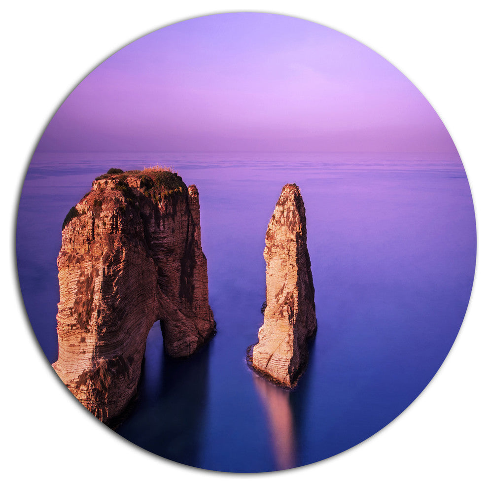 Rawsha Rock On Sunset, Seashore Disc Metal Artwork, 36"