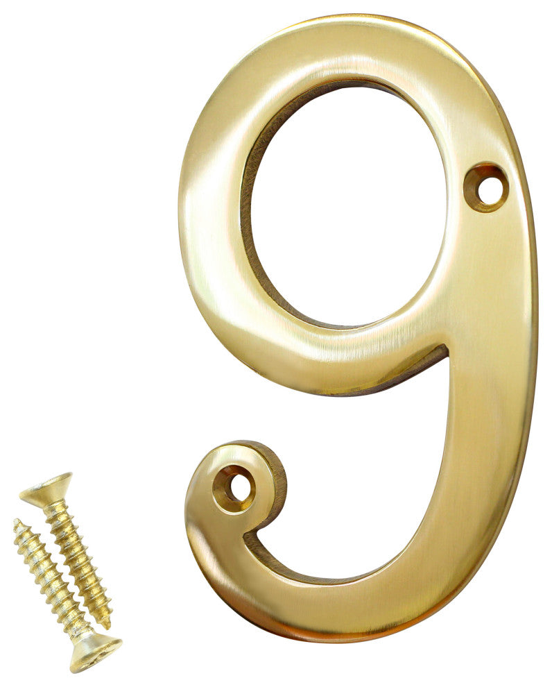 --------[Product Info]-------- • Solid Weatherproof Brass Material • [NEW] Includes rust-resistant screws--------[Variant Specs]--------4 Inch:>> Font Size (in): L:4, W:1.25-2.75, D:0.2>> Item Weight (lbs): 0.19•  Width varies depending on the letter/number--------[Item Uses]--------House NumberWedding NumberMailbox NumberAddress NumberCustom ClockWall RulerMetal Signage NumberPlaque NumberArchitectural Number--------[About]--------RCH Hardware Brass Modern Curvy House Number, 4-Inch, Various Finishes:This item is available in Polished Brass, Polished Chrome, Satin Chrome.