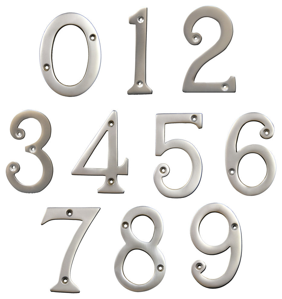 --------[Product Info]-------- • Solid Weatherproof Brass Material • [NEW] Includes rust-resistant screws--------[Variant Specs]--------4 Inch:>> Font Size (in): L:4, W:1.25-2.75, D:0.2>> Item Weight (lbs): 0.19•  Width varies depending on the letter/number--------[Item Uses]--------House NumberWedding NumberMailbox NumberAddress NumberCustom ClockWall RulerMetal Signage NumberPlaque NumberArchitectural Number--------[About]--------RCH Hardware Brass Modern Curvy House Number, 4-Inch, Various Finishes:This item is available in Polished Brass, Polished Chrome, Satin Chrome.