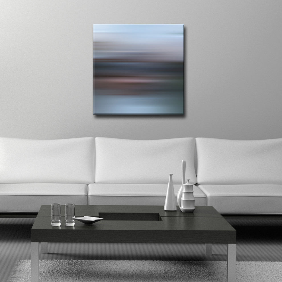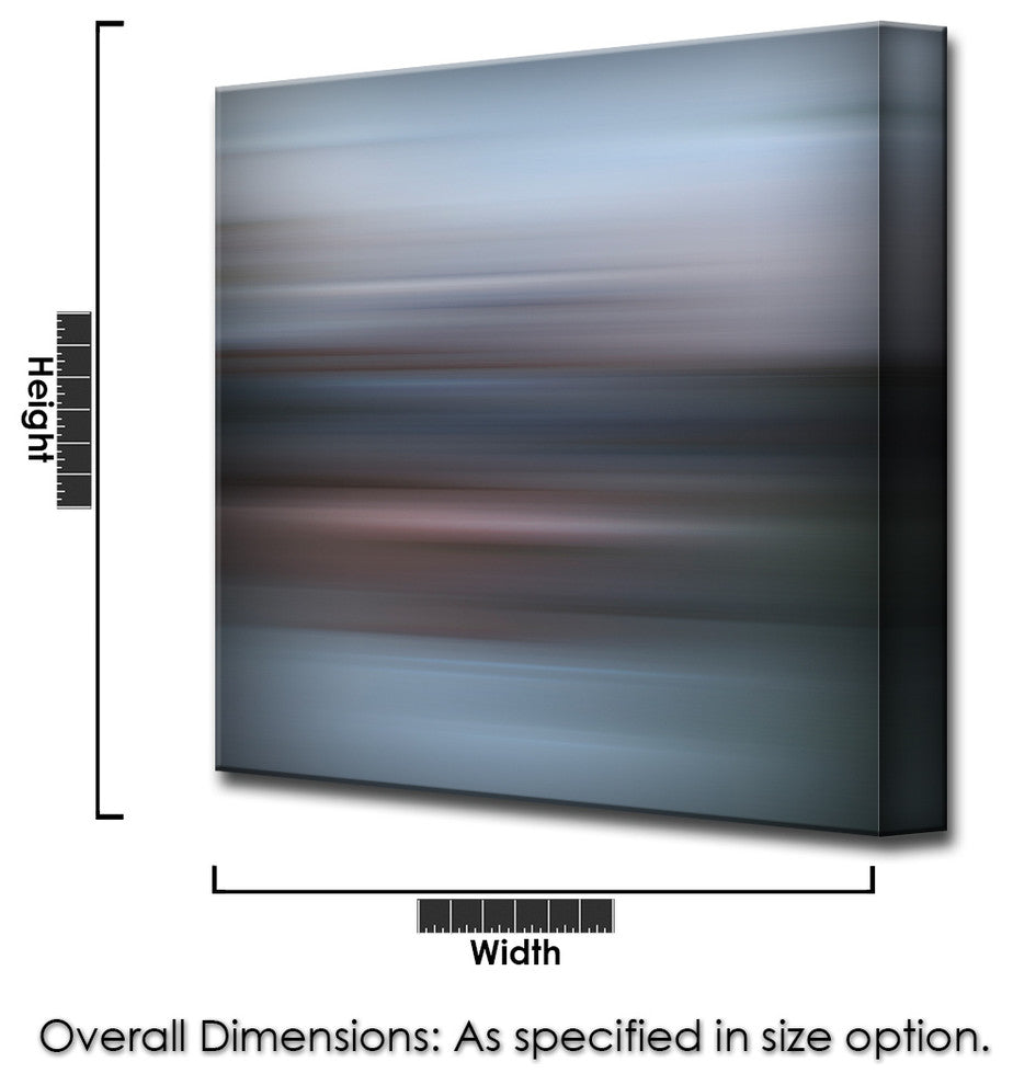 A mod, cosmic horizon or interstellar landscape is characteristic of Ready2HangArts latest collection Blur Stripes. These celestial works compose an austere series featuring a color palette compatible with most every home decor style and taste. ''Blur Stripes XVI'' is a midnight horizon; the solar setting features deep lavender and indigo hues meddling on a base of darling blue. Nurture the cohesive design within your space through a tailored, Blur Stripes canvas art piece; experience your interior design dreams borne.