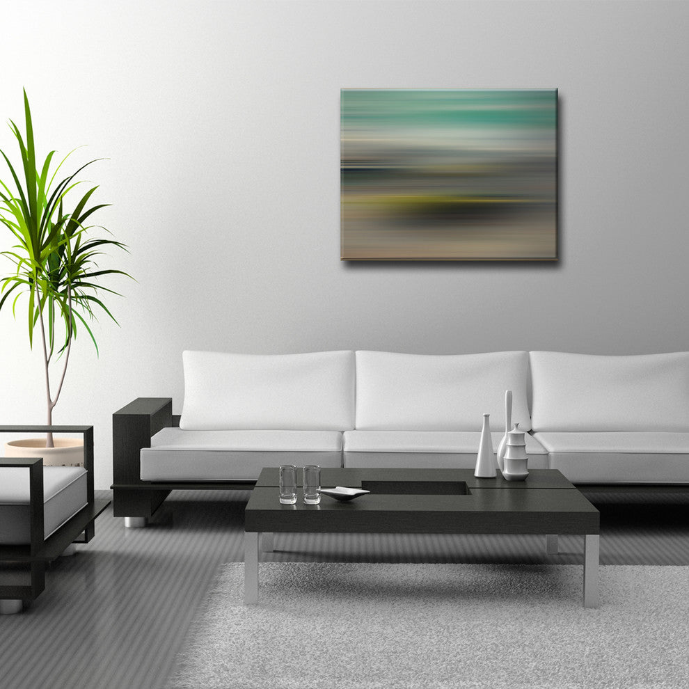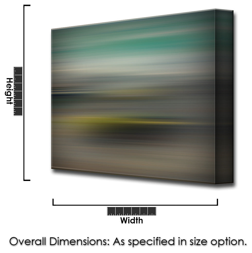 A mod, cosmic horizon or interstellar landscape is characteristic of Ready2HangArts latest collection Blur Stripes. These celestial works compose an austere series featuring a color palette compatible with most every home decor style and taste. ''Blur Stripes XXXI'' is a vivid m?lange of color; a teal and taupe setting featuring yellow and black tinges. Nurture the cohesive design within your space through a tailored, Blur Stripes canvas art piece; experience your interior design dreams borne.