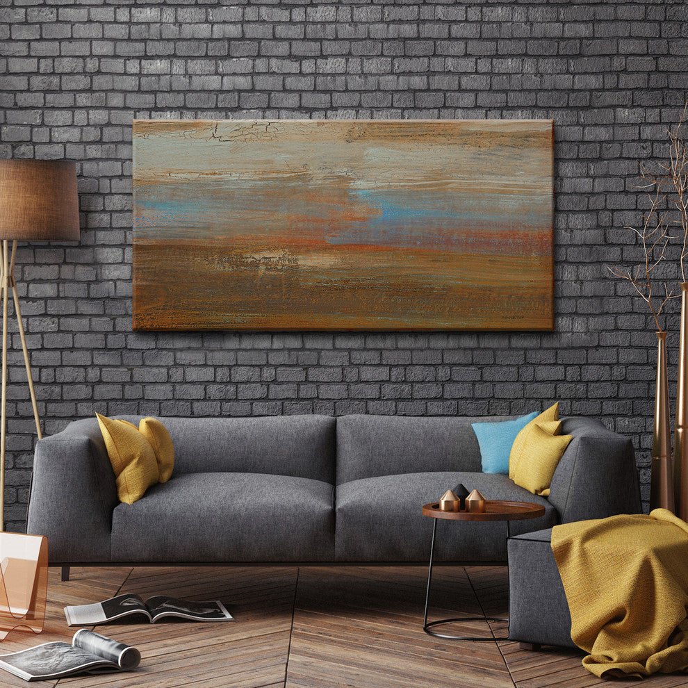 Abstract Art enriches your Wall Decor, with Oversized Ready2HangArt Canyon Ranch Sunset Canvas Art by Norman Wyatt, Jr. His painting is approached with a diverse use of elements found in nature, offering a wide range of Artwork with unique subjects and textures. Made in the USA, this Wall Art is produced on water resistant canvas, coated with a UV-Resistant gloss, and wrapped on a wood frame with hardware Ready-to-Hang on your wall.