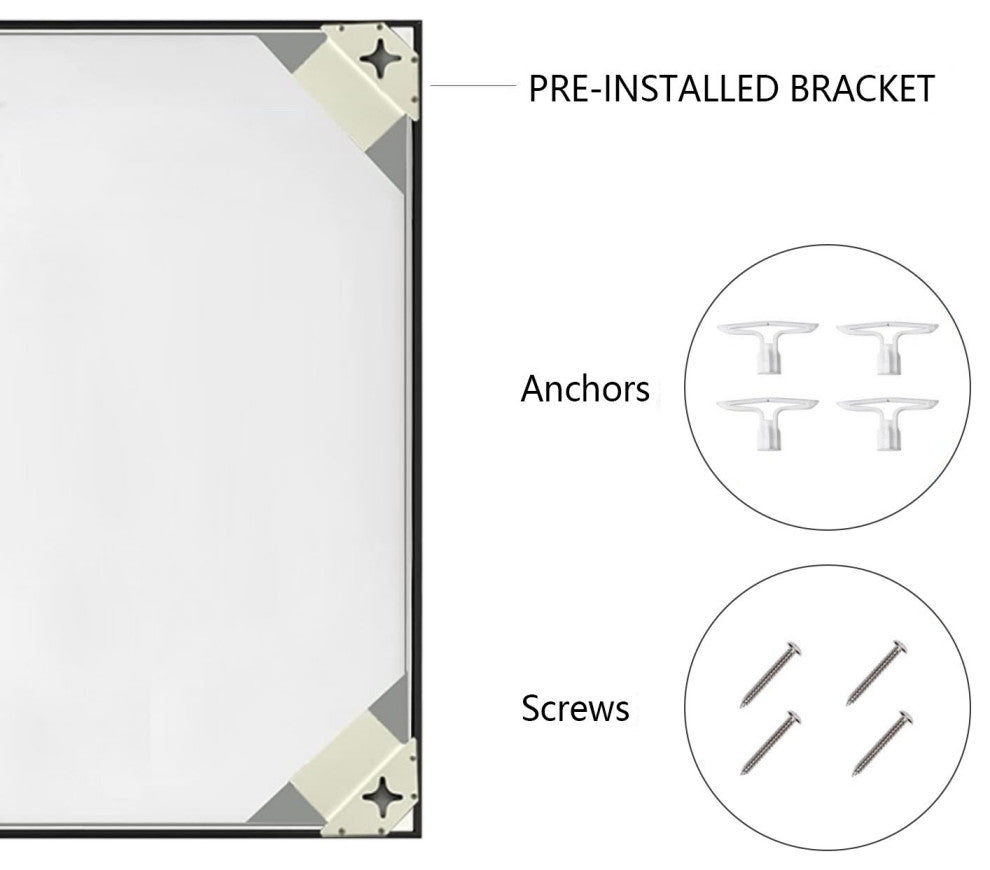 Add simple sophistication to any interior in an instant with this sleek modern framed vanity mirror. Made of premium aluminum and mirror materials, the wall accent mirror is durable, waterproof and non-rusting. The mirror edge is protected by the aluminum frame from breaking and ensure beauty. Each piece has been polished carefully and metal bracket is pre-install on the back of the mirror. Perfect for use in bathroom, vanity, bedroom, living room, entrance.