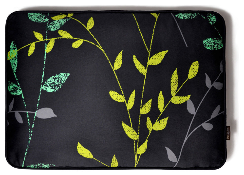 Rectangular pet bed (Medium) Greenery design from the Original Collection (Slate Gray/Dark Gray); 100% natural cotton cover; 100% machine washable; eco-friendly and durable construction Care instructions: Cover and insert may be removed. Machine wash cold and gentle low heat cycle.