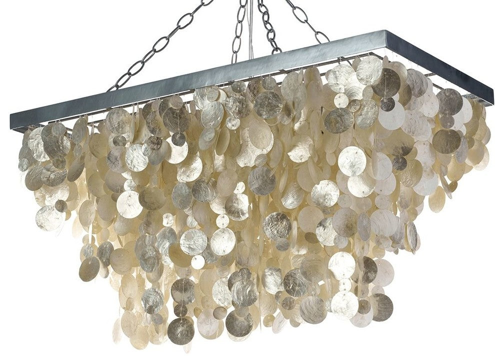 Rectangular Rain Drop Capiz Seashell Chandelier, Champagne