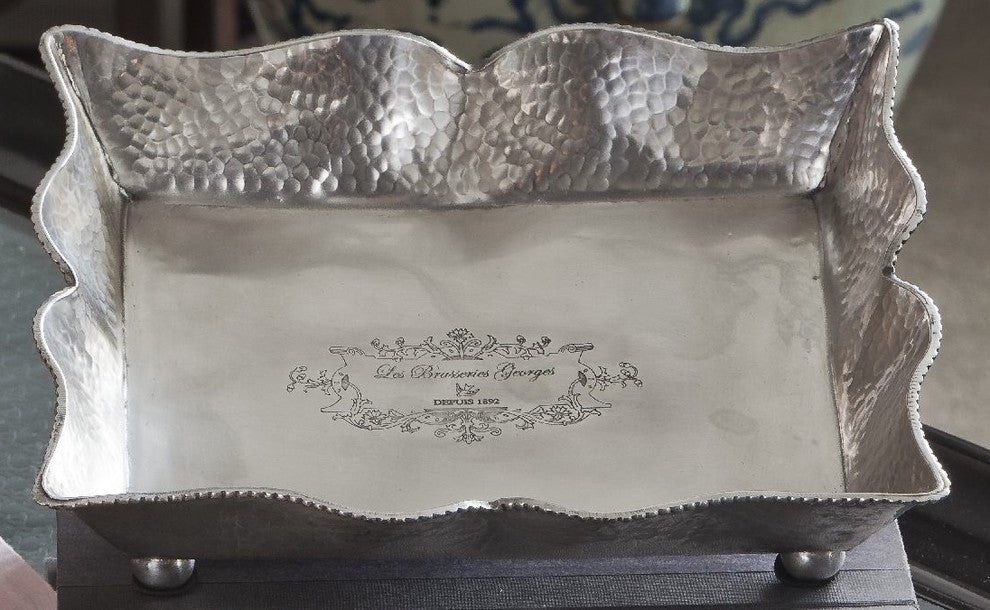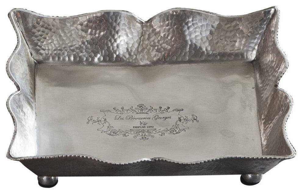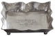 Add function to an ottoman or spruce up a console table with the Rectangular Tray, shown here in antique silver. It features a stylish design that will refresh your space. This piece is made of brass and measures 10 by 2.5 inches.