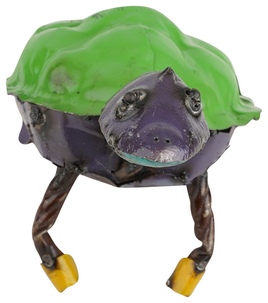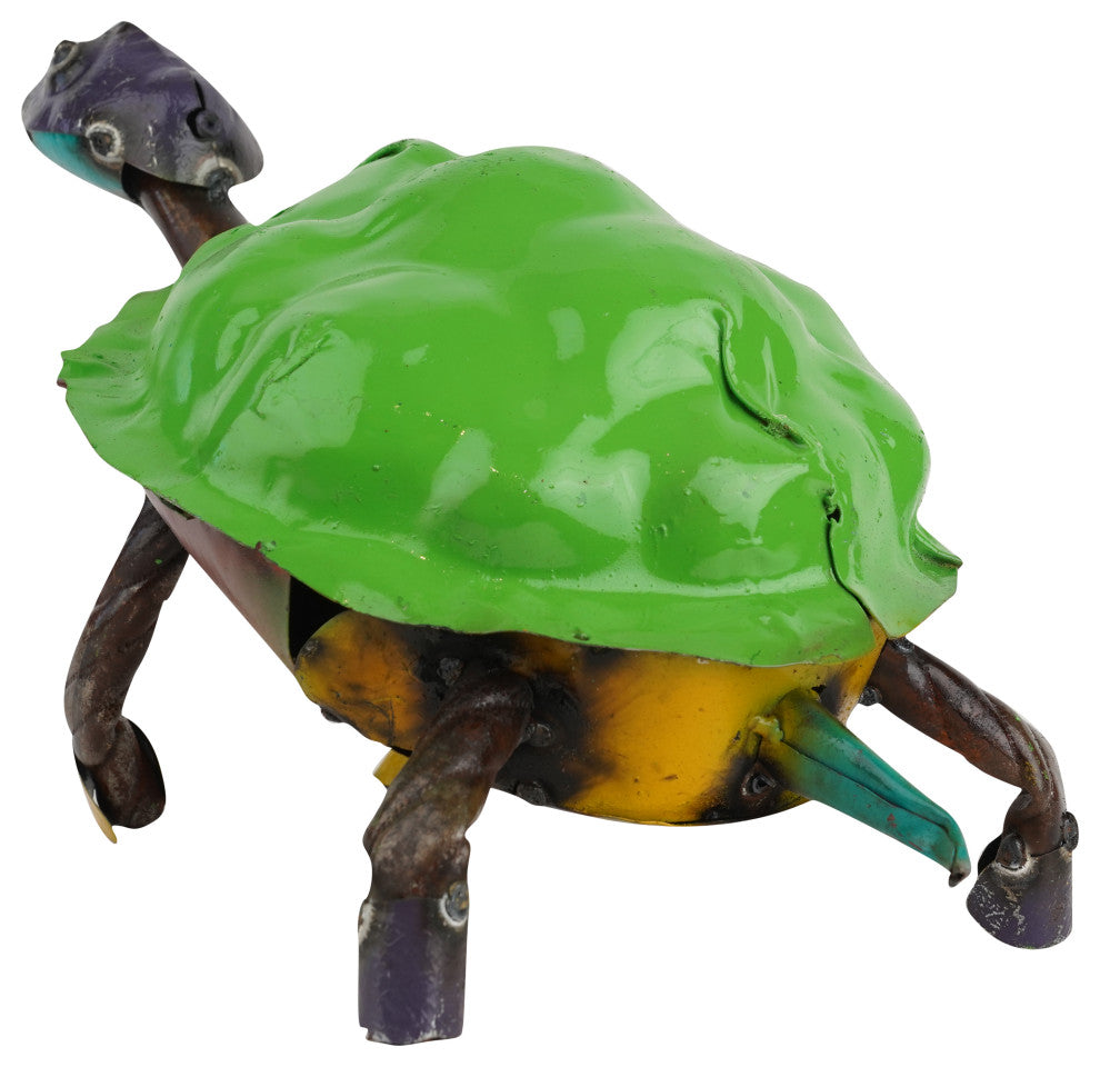 Recycled Handmade Metal Garden Turtle, Green & Brown, Medium
