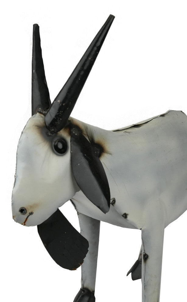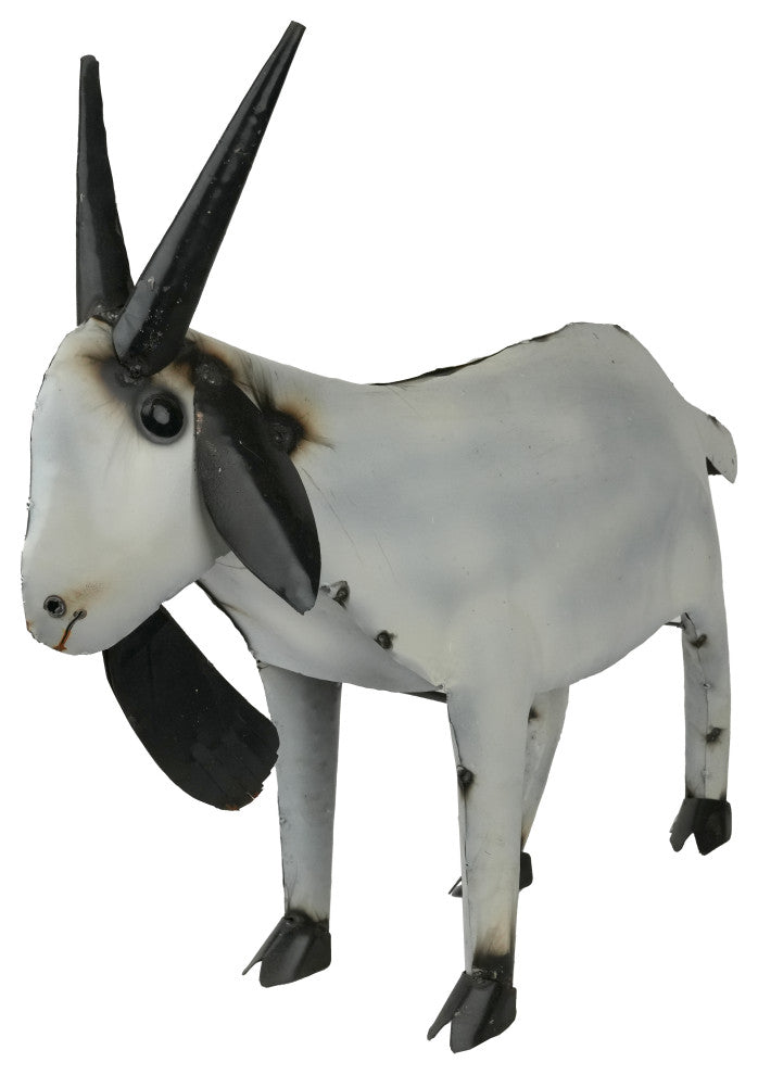 Recycled Metal Garden Farmhouse Goat-Handmade-Rustic, White & Black, Medium