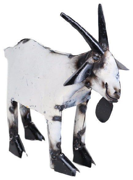 Recycled Metal Garden Farmhouse Goat-Handmade-Rustic, White & Black, Small