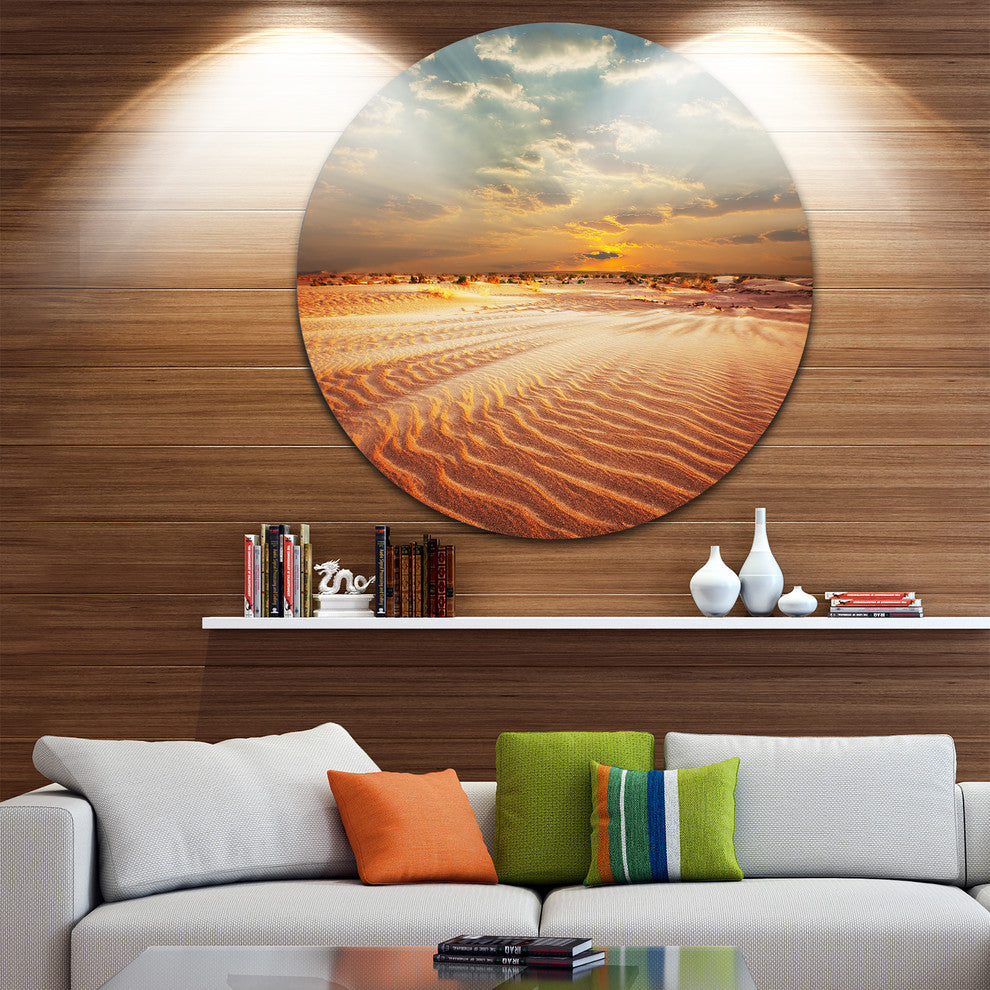 Red Desert Under Blue Cloudy Skies, Landscape Round Metal Wall Art, 36"