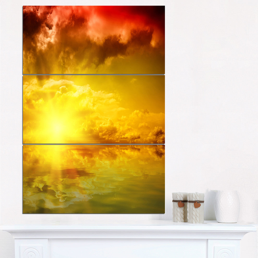 "Red Dramatic Sky With Yellow Sun" Metal Wall Art, 3 Panels, 28"x36"