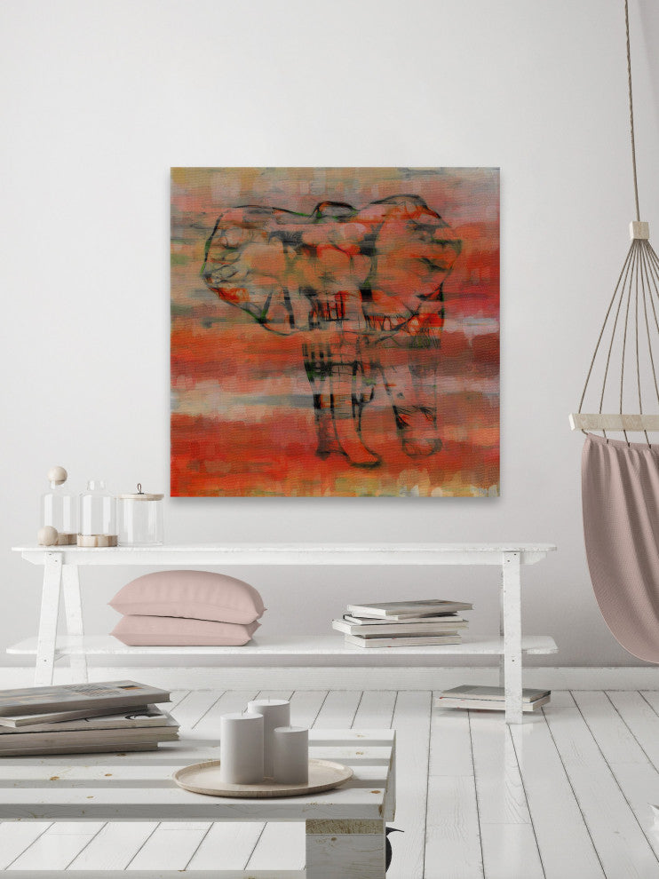 Striking and unique, the "Red Elephant" Print on Canvas by Parvez Taj will bring your walls to life. Printed on canvas, this 40 inch wide by 40 inch tall contemporary artwork will make a statement in any living room, dining room, or bedroom.- Fine art canvas print by Parvez Taj- Professionally hand stretched- Gallery wrapped in sustainable, non-warping wood- Arrives ready to hang- Made in the USA- Includes a certificate of authenticity- Artist signature on the front