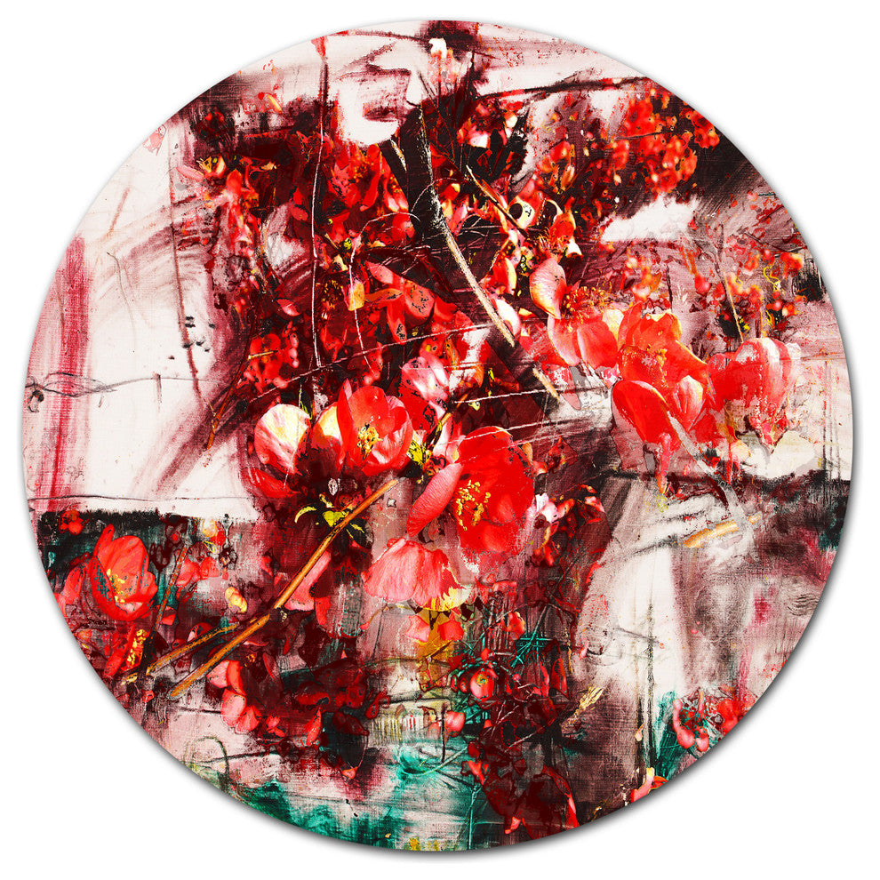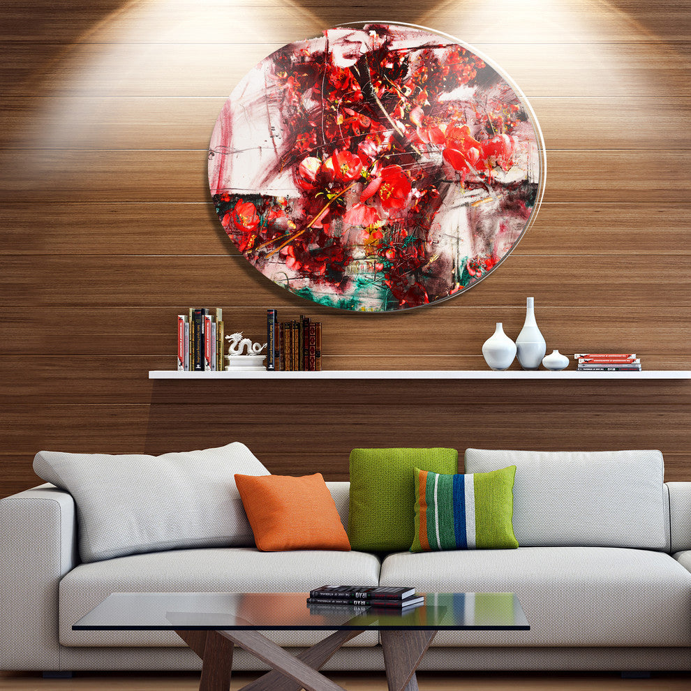 Bring Contemporary Abstraction to your home with this large Circle Metal wall art. This Red Flowers Abstract Background Metal Artwork makes it the focal point of any room or office.