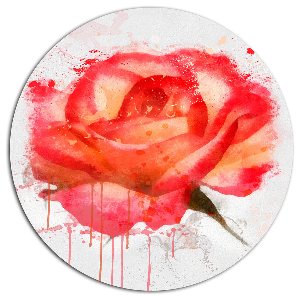 Red Rose Hand-Drawn With Splashes, Floral Disc Metal Artwork, 11"