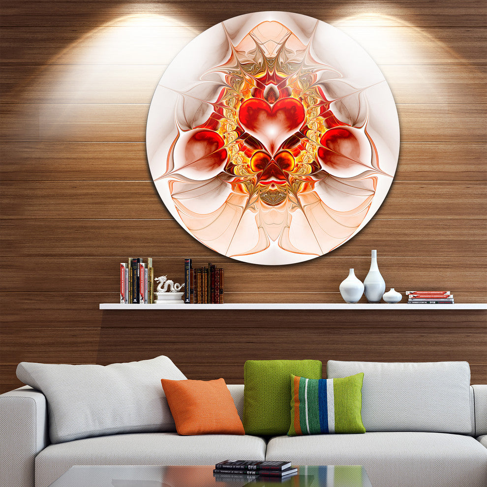 Bring Contemporary Abstraction to your home with this large Circle Metal wall art. This Large Red Symmetrical Fractal Heart Metal Artwork makes it the focal point of any room or office.