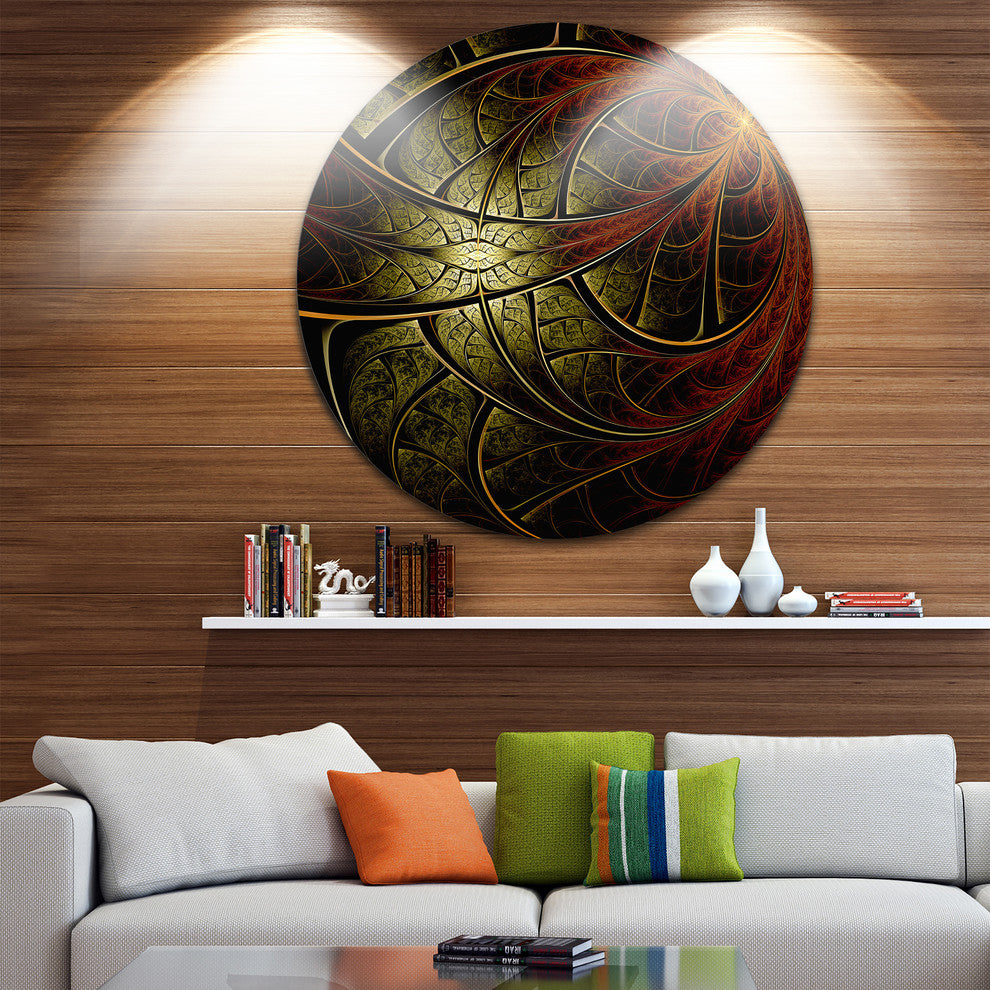 Bring Contemporary Abstraction to your home with this large Circle Metal wall art. This Red Yellow Metallic Fabric Flower Metal Artwork makes it the focal point of any room or office.