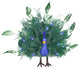 From the Regal Peacock CollectionPeacock features a body that is covered in blue glitter and opened green tail feathers that are accented with blue glitter and Clear gemstonesFree standing decoration can be placed in a Christmas tree, wreath or can stand alone on a table topRecommended for indoor useDimensions: 14"H x 17"W x 6"DMaterial(s): Foam/faux feathers/plastic/wire