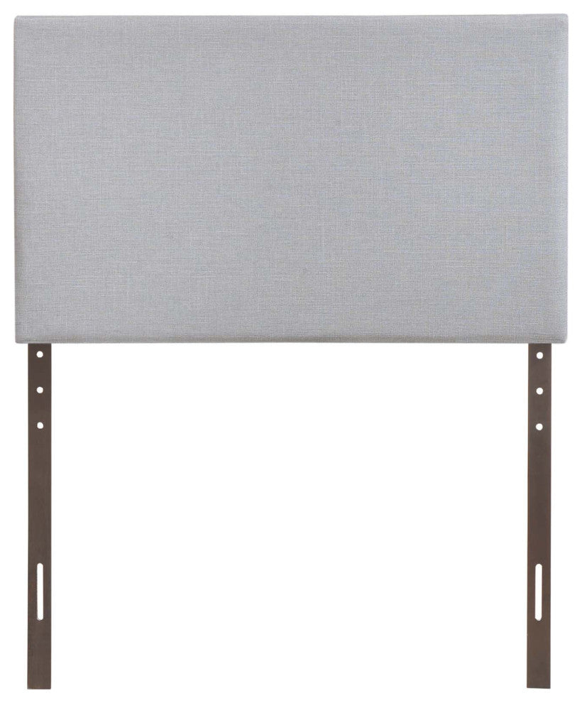 Enhance your bed of choice with a spaciously designed Region Linen Fabric Upholstered Twin Headboard. Region Twin Headboard captures the expansive moments of restful nights with an elegance that doesn�t detract from the simplicity of the design. Made of particleboard with solid wood poles and fine linen fabric upholstery, rejoice with a contemporary design that admirably complements your contemporary d�cor and most twin beds. Set Includes: One - Region Twin HeadboardContemporary headboard"Elegant, expansive design"Fine linen upholsteringParticleboard with solid wood polesAssembly RequiredOverall Product Dimensions: 3"L x 39.5"W x 48"HBedframe Mounting Location: 4.5 - 8.5"HMounting Location A - Height to Top of Headboard: 47.5"HMounting Location A - Height to Bottom of Headboard: 25"HMounting Location B - Height to Top of Headboard: 45"HMounting Location B - Height to Bottom of Headboard: 22.5"HMounting Location C - Height to Top of Headboard: 42.5"HMounting Location C - Height to Bottom of Headboard: 20"HMounting Location D - Height to Top of Headboard: 40"HMounting Location D - Height to Bottom of Headboard: 17"HProduct Weight: 15 LBsProduct Color: Sky GrayProduct Material: Frame: CARB Particleboard, Solid Wood / Fabric Material: Linen type of foam � CA foam, name of foam � Polyurethane foam, thickness foam � �� or 12.70 mm, density � 18H