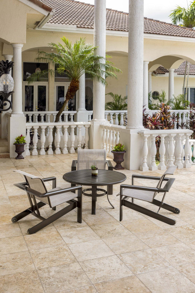 Immerse yourself in timeless comfort and innovative design with our meticulously crafted Adirondack Chair. This reinterpretation of a beloved classic blends relaxation with contemporary flair, elevating your outdoor space with its charm and functionality.Features:•  Made of durable commercial grade aluminum with a choice of three seat styles•  High quality polyurethane skate rear wheels make for easy maneuverability•  All aluminum framework•  Acrylic "Suncloth" weave material available•  Sling seat available•  Beachwood woven seat availableDimensions:Outdoor Standard Chair•  Assembled Product: 31.25 inches wide x 34.5 inches deep x 30.25 inches high•  Seat Width: 23 inches•  Seat Depth: 21.5 inches•  Back Height: 21 inches•  Arm Width: 3.5 inches•  Arm Height: 22.25 inches•  Weight Capacity: 250 poundsThe Winston DifferenceQuality - Since 1975, our passion has been producing furniture that is ready to stand up to whatever Mother Nature dishes out. Resort quality materials combined with our expertise mean your furniture will be ready for you when it is time to get outside for years to come.Comfort - At Winston, we want you to want to spend more time outdoors, so every seating option is designed with your comfort in mind. Whether your style preferences lean toward products with cushions or our latest HDPE planked seating, every Winston chair offers generous proportions and thoughtful ergonomic design.Convenience - Whether convenience for you means quick shipping of in-stock products, shopping online in your pjs, or furniture so easy to care for you only need to hose it off once a year, Winston strives to provide options that satisfy your personal needs. Winston began manufacturing simple pieces made from aluminum and vinyl strap in 1975. As the popularity of casual outdoor furniture grew, Winston expanded capabilities and was the first company to introduce cushioned outdoor furniture made with all-weather fabrics. In 1982, Winston again led the pack by introducing sling furniture to a market that embraced the stylish and easy-to-maintain product line. Over the past few decades Winston has answered to the growing trend toward outdoor styles with an indoor feel, by developing ultra-comfortable furniture made with original details, customizable finishes, and resort grade materials. A commitment to service and design earned Winston coveted spots on specialty showroom floors as well as the Casual Furniture Manufacturer Leadership Award from the National Association of Casual Furniture Retailers (NACFR) four times since the award''s inception in 1990. Today, Winston draws on a rich heritage in the outdoor furniture industry to continue innovating and designing furniture pieces that are casual, durable and elevated, with classic details and updated modern finishes.