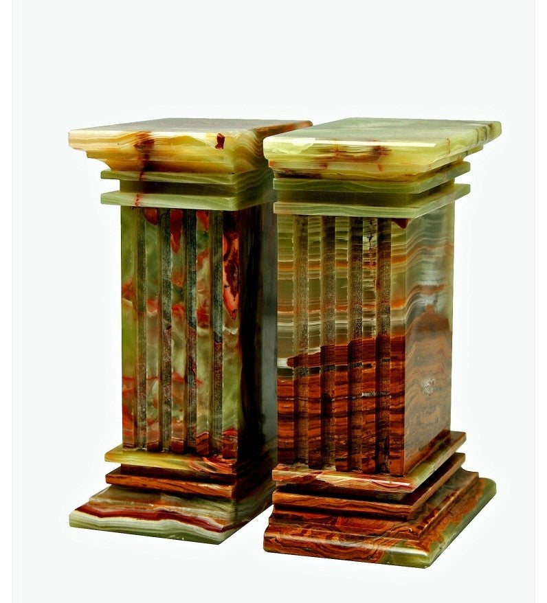 The impressive column design of these bookends will transform your collection of novels into a striking design element on your bookshelf or desktop. Crafted from natural onyx, each set features patterns and swirls that are unique when compared with others.