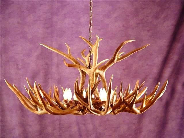 Reproduction Antler Mule Deer Oval Chandelier (38"L x 30"W x 19-20"H), 8 light sockets, 6 feet of chain. Handmade in North America using top quality reproduction antlers. Sockets are made to resemble real antler, each rated up to 40 Watts. Certified in U.S & Canada (CSA listed to comply with UL 1598) Light Bulbs Included.Shades Not Included
