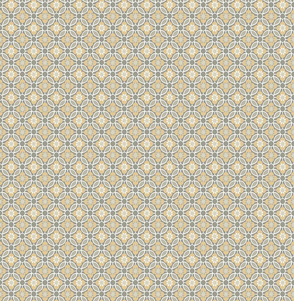 Retro Floral Wallpaper, Gold and Gray, Sample