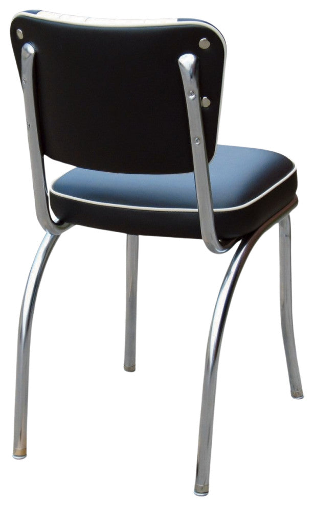 Step back in time with our extraordinary Retro Home Dining Chair, a true homage to classic design and timeless elegance. Elevate your space with this American-made retro kitchen chair, built to last while offering the perfect blend of retro flair, exceptional comfort, and quality craftsmanship. Make a bold statement and enjoy the nostalgic charm this chair brings to your home. Richardson Seating''s commercial-grade dining chairs are perfect for stylish home kitchens, dining rooms, 24/7 cafés, restaurants, or bars.Classic Retro Design: Showcases a stylish dual-tone upholstered back and decorative seat pipingComfort Meets Durability: Made with heavy-duty 14 gauge welded steel frame in chrome finish and high-density 2" thick box seat for superior comfortReady to Use: Arrives fully assembled. Simply unpack and start enjoying your stylish new seating.Proudly Made in the USA: Commercial-grade construction, meticulously crafted with pride and precision in the USA.1 year Manufacturer''s warranty for commercial or residentialManufacturer Warranty: We warrant this product to be free of any manufacturer''s defect for one year from the date of purchase, assuming normal indoor use.