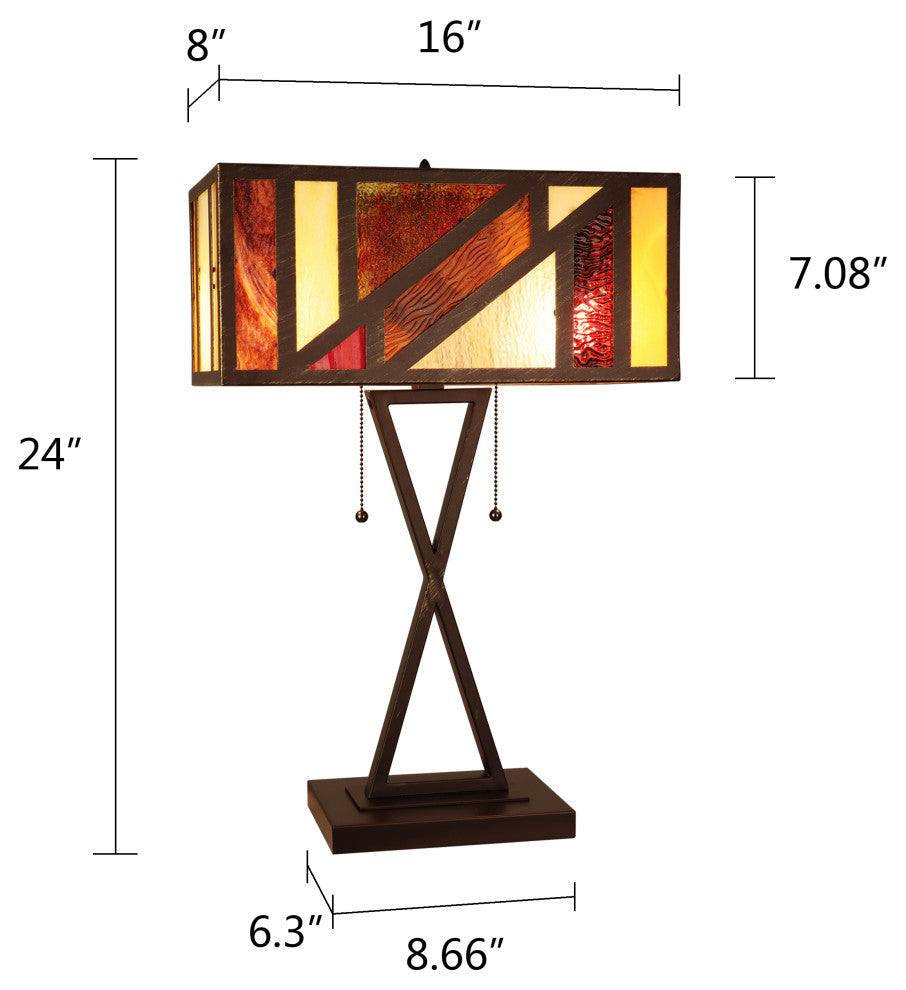 Retro Stained Glass 2-Light Table Lamp 16" Shade