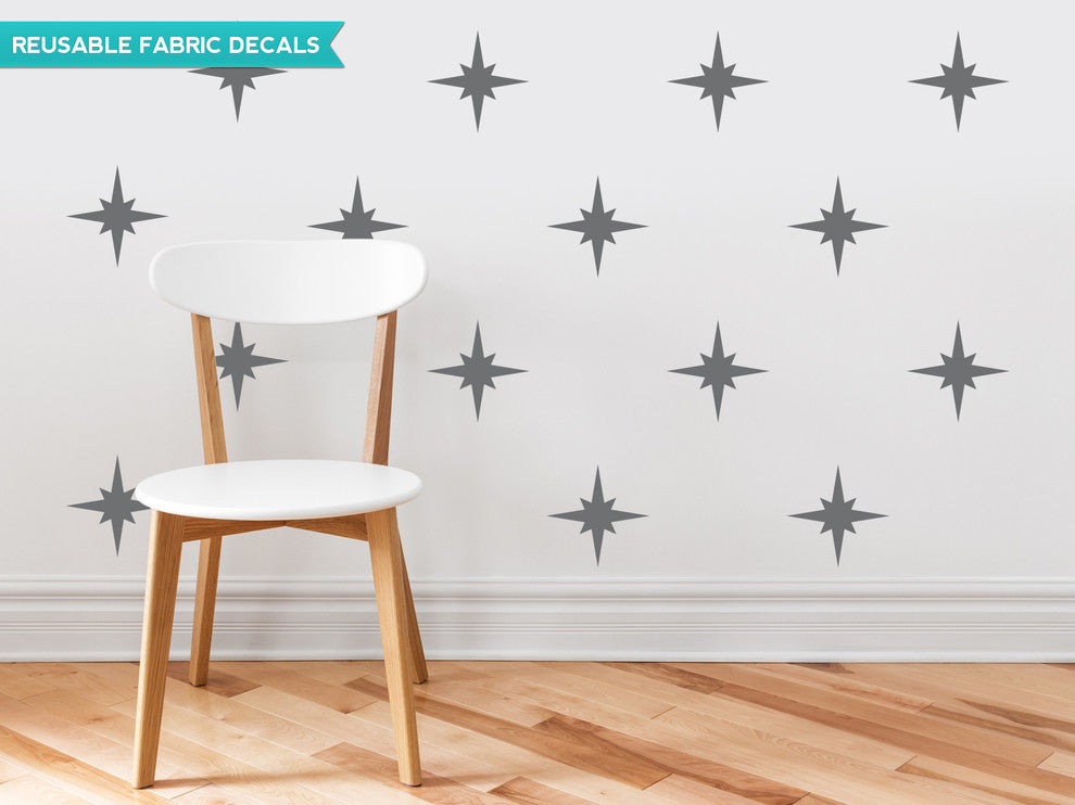 These beautiful retro star fabric wall decals will add huge personality to your wall decor. The decals are made from a fabric material that is extremely easy to apply. Just peel and stick anywhere. They are repositionable and can be removed without leaving any sticky residue.