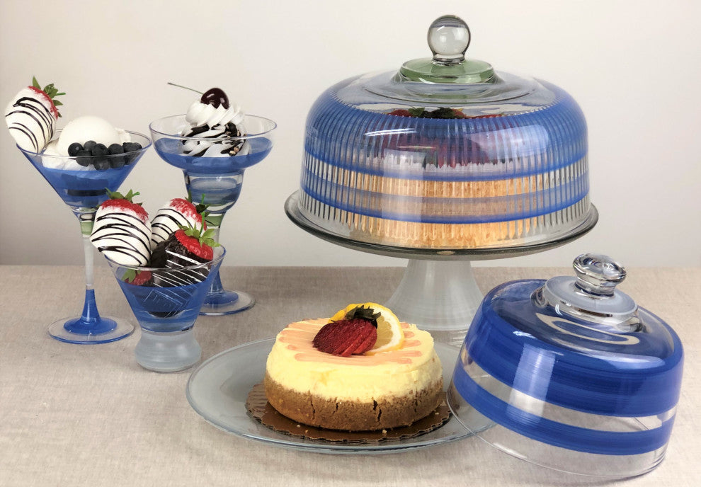This lovely hand painted cake dome set is in a retro style. It is blue with accent colors. Perfect for any season or occasion. Something to be handed down from generation to generation. Proudly hand painted in the USA.