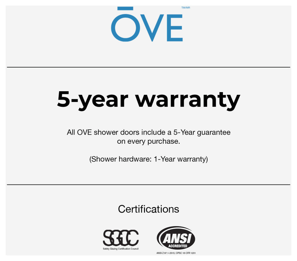 5-wear warranty on glass panels, and 1-year warranty on hardware