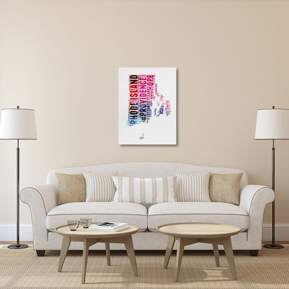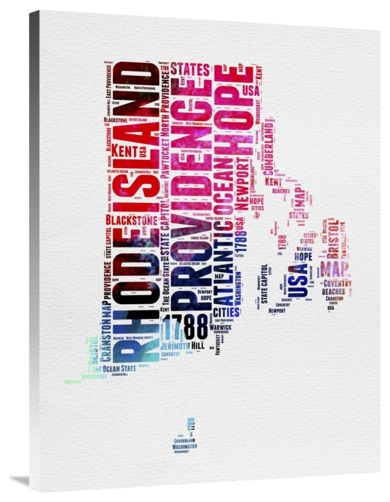 "Rhode Island Watercolor Word Cloud" Fine Art Print